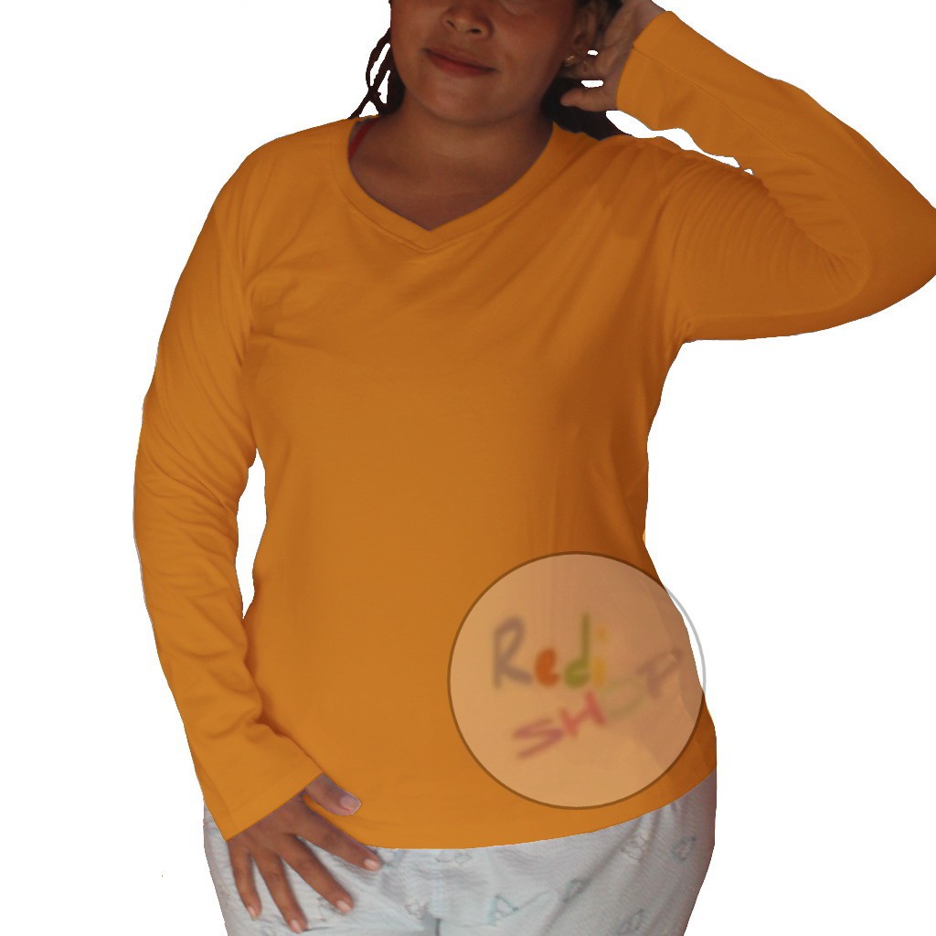 XXXL 3XL XXL XL L M Kaos T Shirt Wanita Cewek Perempuan Jumbo Big Size Lengan Panjang Polos Leher V Neck KUNING MUSTARD MUDA CERAH CORATCORETUDIO Rp90 000 4 5